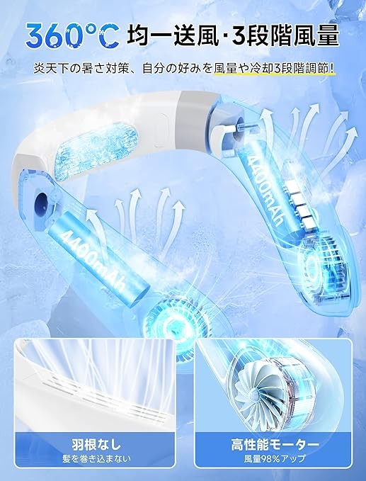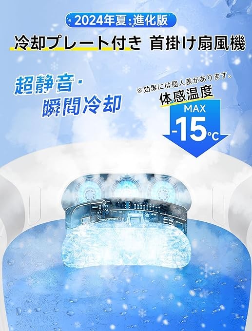 2024 Summer Innovation Cooling Neck Cooler, Neck Fan with Cooling Plate, Instant Cooling, 3 Stage Adjustment, No Blades, 360 Degree Surround Style, Neck Cooler, Portable, Lightweight, 4,400 mAh, Large