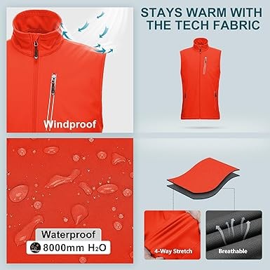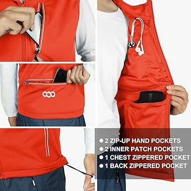 33,000ft Men's Windproof Lightweight Golf Vest Outerwear with Pockets, Softshell Sleeveless Jacket for Running Hiking Sports