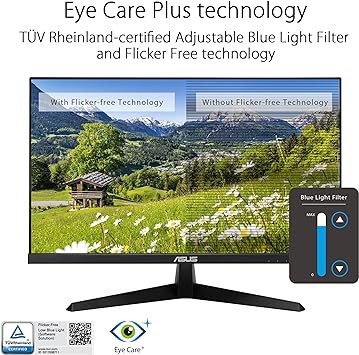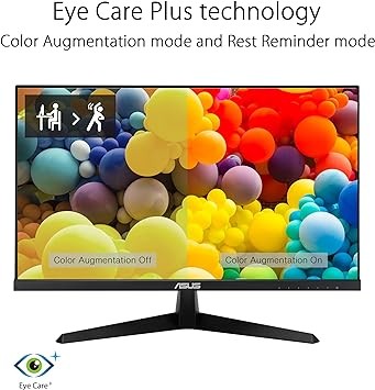 ASUS 22” (21.45” viewable) 1080P Eye Care Monitor (VY229HE) – Full HD, IPS, 75Hz, IPS, 1ms, Adaptive-Sync, Eye Care Plus Technology, Color Augmentation, Rest Reminder, HDMI, VGA, VESA Wall Mountable