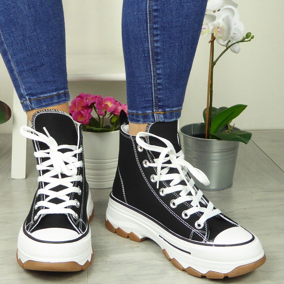 Canvas Womens Trainers Platform Ladies Lace Up Sneakers Comfort Casual Shoes
