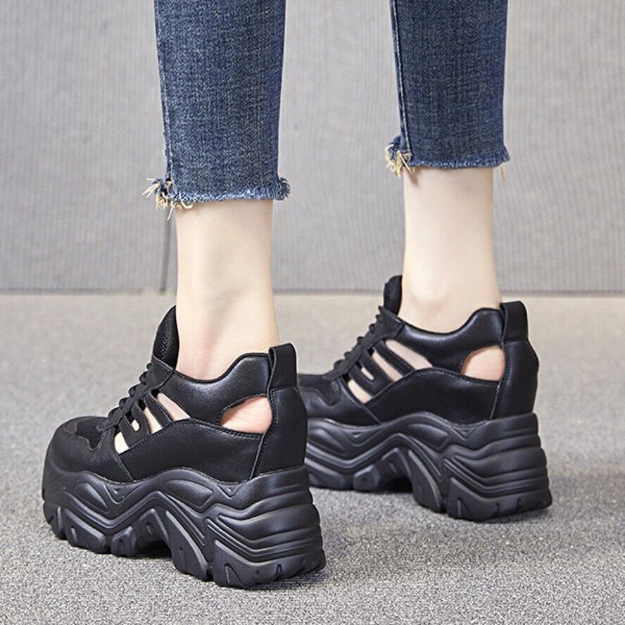Closed Toe Sandals Women Cow Leather Summer Ankle Boots Platform High Heels Punk