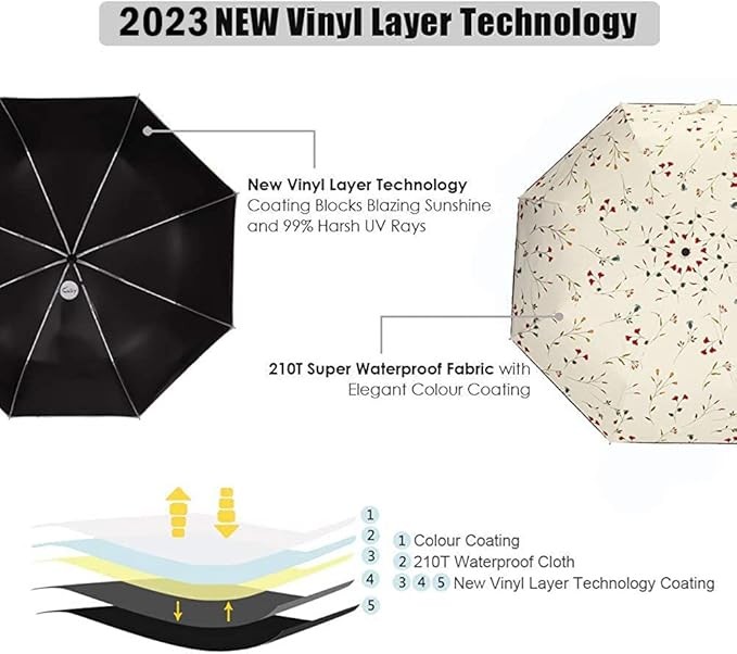 Cuby UV Sun Umbrella Compact Folding Travel Umbrella Auto Open and Close for Windproof, Rainproof & 99.9% UV Protection Parasol with Black Anti-UV Coating