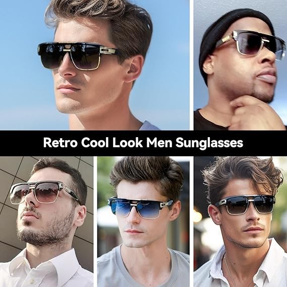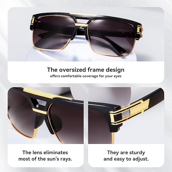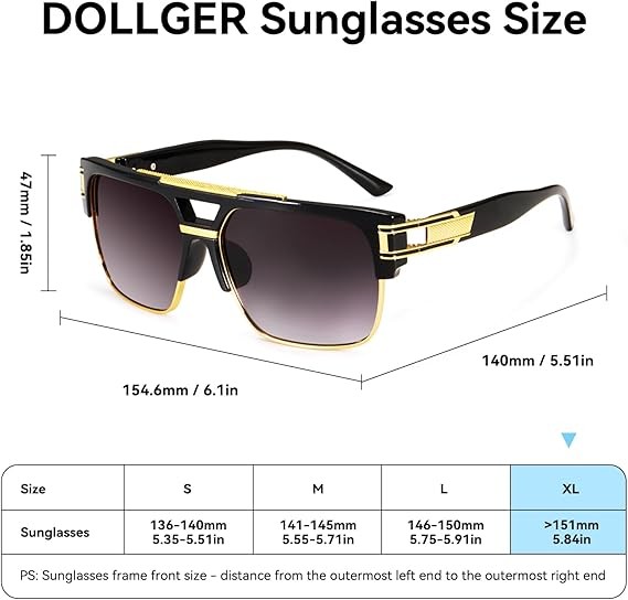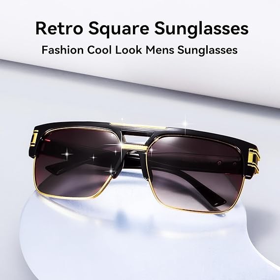 Dollger Square Sunglasses for Men Classic Oversized Sun Glasses Retro Semi Rimless Gold Alloy Frame UV400