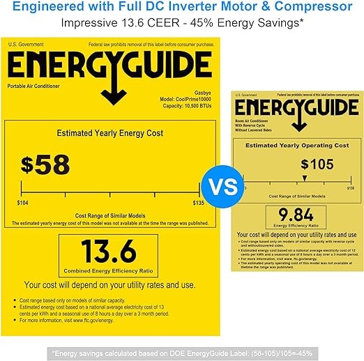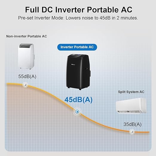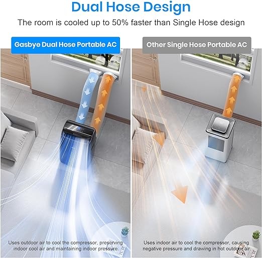 Gasbye Dual Hose Portable Air Conditioner, [2024 Upgraded] Full DC Inverter Compressor, Energy-Saving 13.6 CEER, Low Noise (45dB), Cools Room up to 500 Sq.Ft., Backlit Remote Control, 14,000BTU, Black