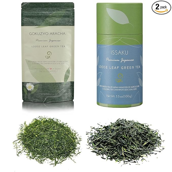Issaku and Gokuzyo Aracha Tea Set from Japanese Green Tea Co – Premium 2-Piece Japanese Green Tea Assortment – Single Origin Loose-leaf Japanese Tea – Delicate Flavor