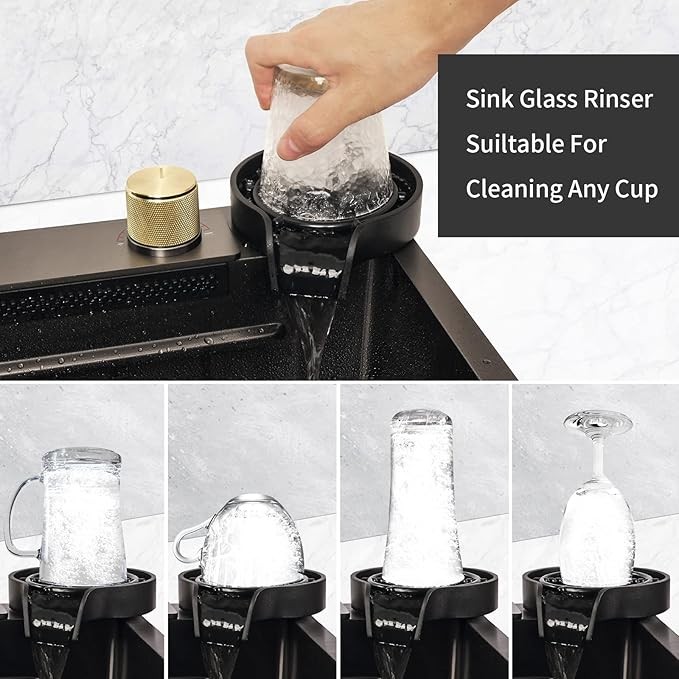 Kitchen Sinks Waterfall Kitchen Sink Set 304 Stainless Steel Nano Sink Home Sink Vegetable Basin with Pull-Out Faucet,Add Pressurized Sink Glass Rinser