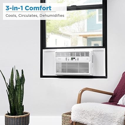 Midea 12,000 BTU EasyCool Window Air Conditioner, Dehumidifier and Fan - Cool, Circulate and Dehumidify up to 550 Sq. Ft, Reusable Filter, Remote Control, 12000 BTU