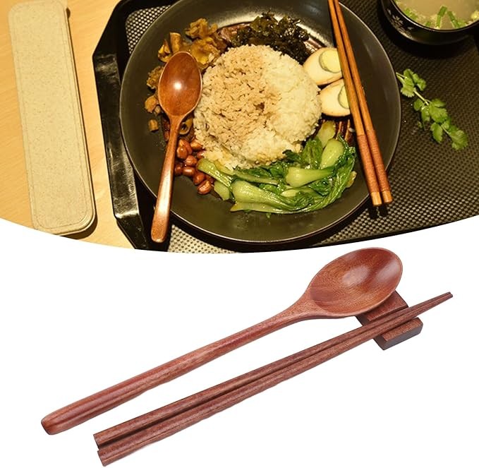 Portable Wooden Spoon and Chopsticks Set Reusable Utensil Set with Case Kitchen Utensils
