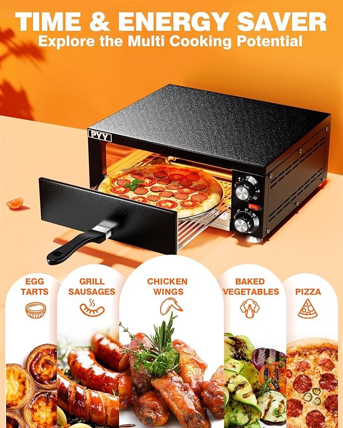 PYY Electric Pizza Oven Indoor Countertop Pizza Oven Commercial Pizza Maker Machine for Home with Timer Stainless Steel Pizza Cooker