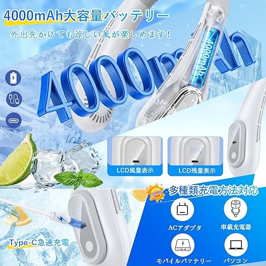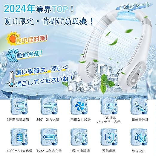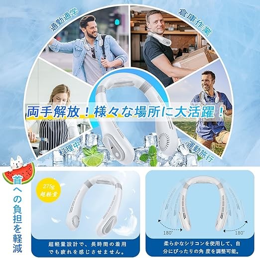 Seefox Neck Cooler (2024 Summer Limited Edition) Neck Fan, Cooling Plate Included, Wingless, 3 Levels of Air Flow Adjustment, Rapid Cooling, U-Shaped Neck Fan, Quiet, Powerful Blower, Lightweight