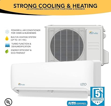 Senville LETO Series Mini Split Air Conditioner Heat Pump, 30000 BTU 208230V, Inverter, Works with Alexa, 2.5 Ton, White