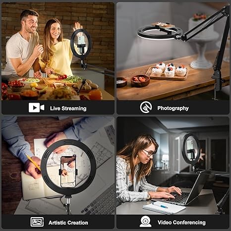 Upgrade Ring Light Overhead Phone Mount, Evershop Selfie Ring Light with Stand and Phone Holder,10”Circle LED Desk Ring Light with Clamp for Video Recording,Zoom Meeting,Live Streaming Tiktok,YouTube