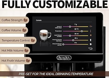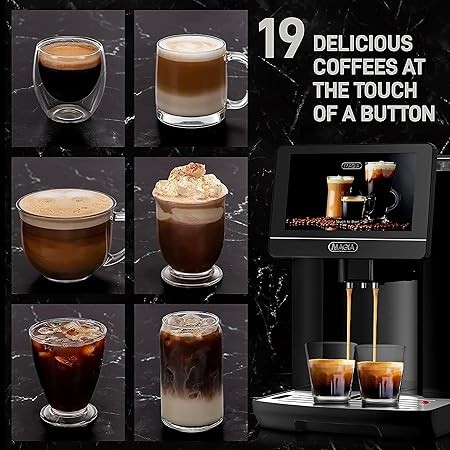 Zulay Magia Super Automatic Coffee Espresso Machine - Durable Automatic Espresso Machine With Grinder - Espresso Coffee Maker With Easy To Use 7” Touch Screen, 20 Coffee Recipes, 10 User Profiles